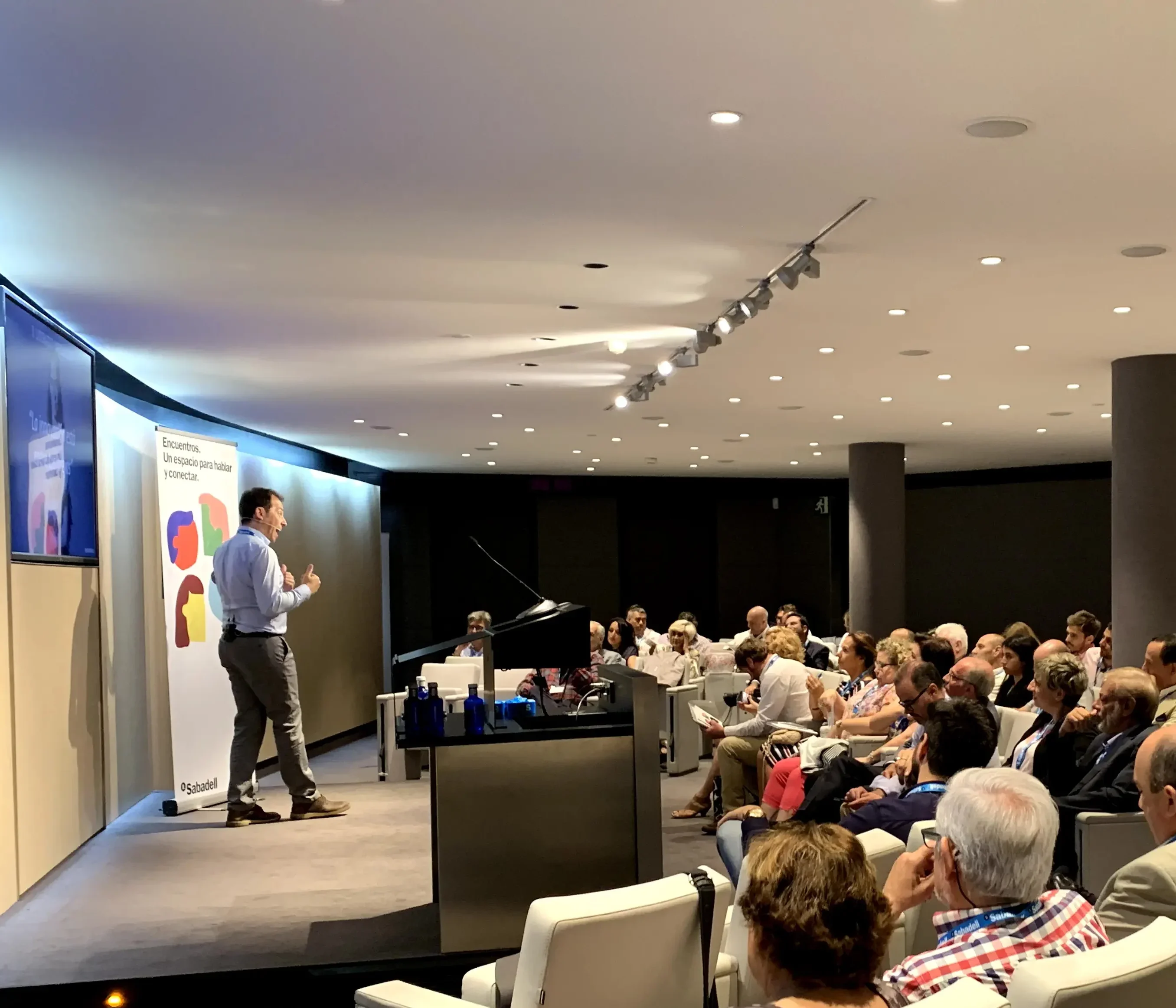 Me conoció en una conferencia que di contratado por el Banco Sabadell para inspirar a sus clientes VIP de empresas.